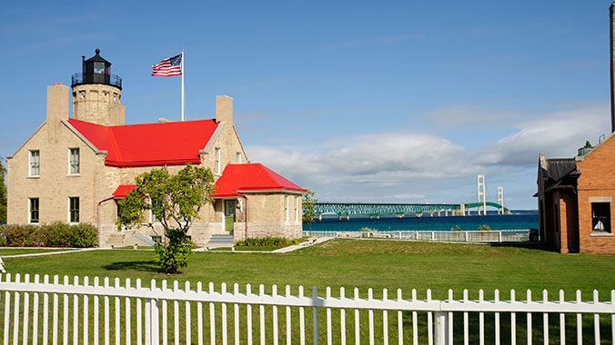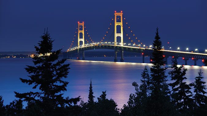 Sault Ste. Marie was destined to be a gathering place. Native Americans relied on the rapids of the St. Mary’s River, which links two Great Lakes, Superior and Huron, for a year-round supply of fish. Its population swelled in the summer—a tradition that continued as French traders came to turn in their pelts and celebrate the end of another long, hard winter. After the Revolutionary War, the Sault, as it is called, became a community divided on national lines, with the United States holding one shore and Canada the other. Eventually man conquered the rapids, and today the Soo Locks transport millions of tons of freight annually to ports all over the world. Tourists are drawn by the cool breezes off the lake and the sight of steel behemoths passing almost close enough to touch.
